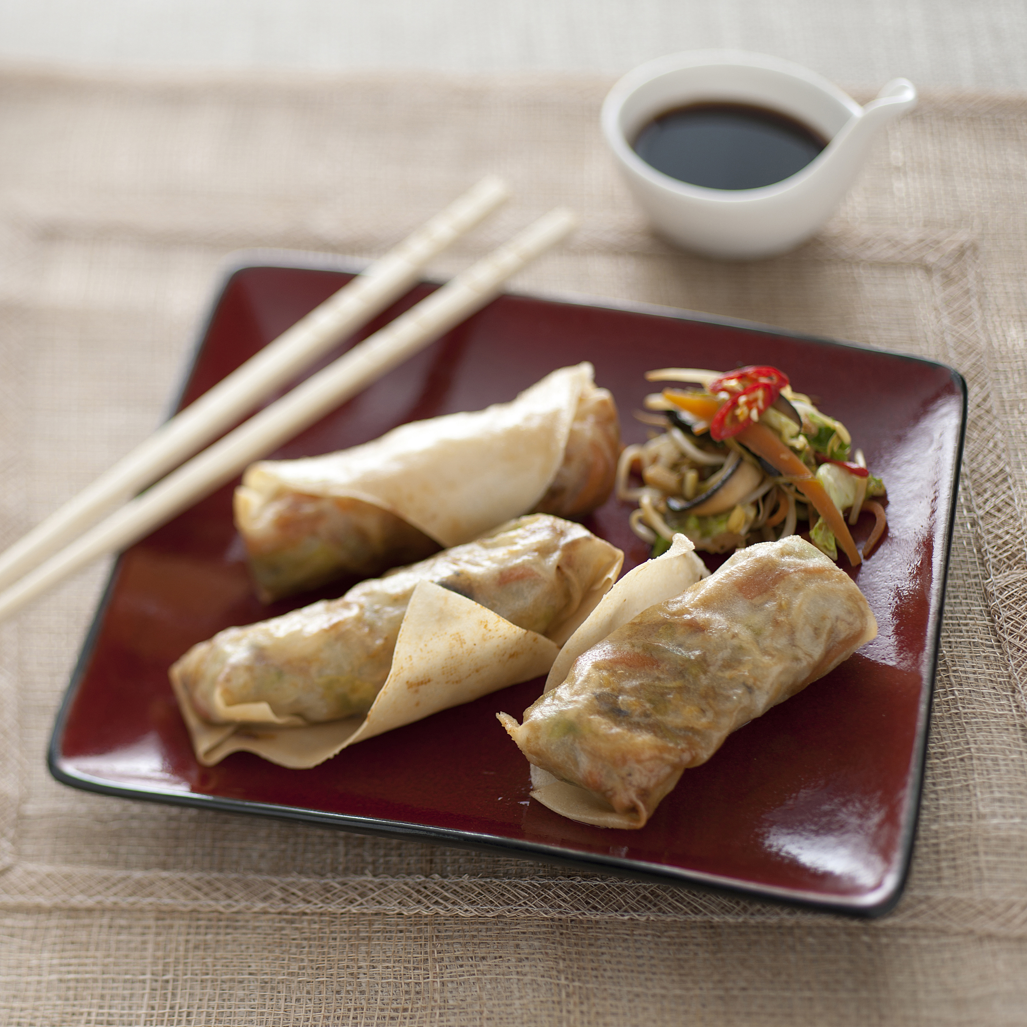 Di solito si utilizzano cavolo, carote, cipollotti e germogli di soia, a cui possono essere aggiunti anche funghi e bambù.